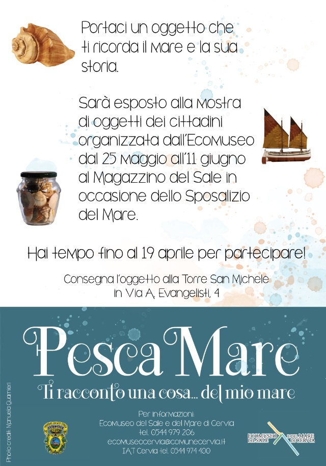 Anche Cervia avrà il suo “pesce d’aprile”. Sabato 1 aprile, dalle 16 alle 18, l’Ecomuseo del Sale e del Mare di Cervia sarà impegnato, presso la Torre San Michele, a promuovere la mostra “PescaMare – Ti racconto una cosa… del mio mare”.