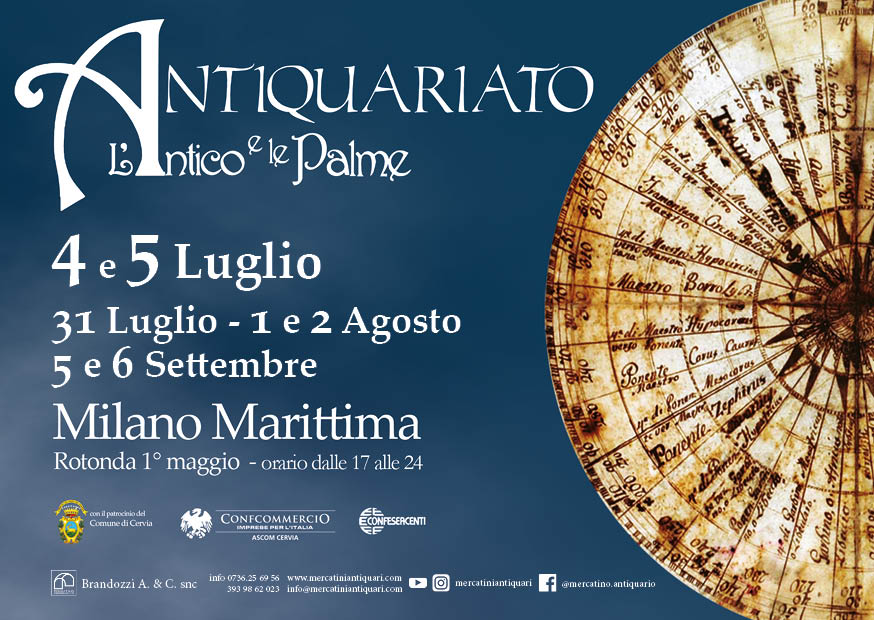Finalmente dopo la lunga pausa del lockdown torna nello splendido scenario dell’isola pedonale di Milano Marittima la Mostra d’antiquariato “L’Antico e le Palme”. Tutti pronti e carichi per ripartire con la prima delle tre edizioni estive. La manifestazione antiquaria più famosa della riviera adriatica, giunta a Milano marittima al 6° anno, ci accompagnerà per tutta l'estate con treappuntamenti in luglio, agosto e settembre.