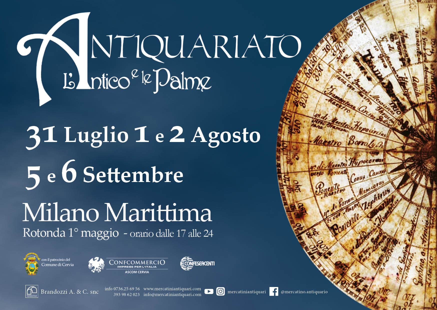 Nello splendido scenario dell’isola pedonale di Milano Marittima arriva il secondo appuntamento dell'estate 2020 con la Mostra d’antiquariato “L’Antico e le Palme”. La manifestazione antiquaria più famosa della riviera adriatica, giunta a Milano marittima al 6° anno, ci accompagnerà fino alla fine dell'estate con l'ultima data del 5 e 6 settembre.