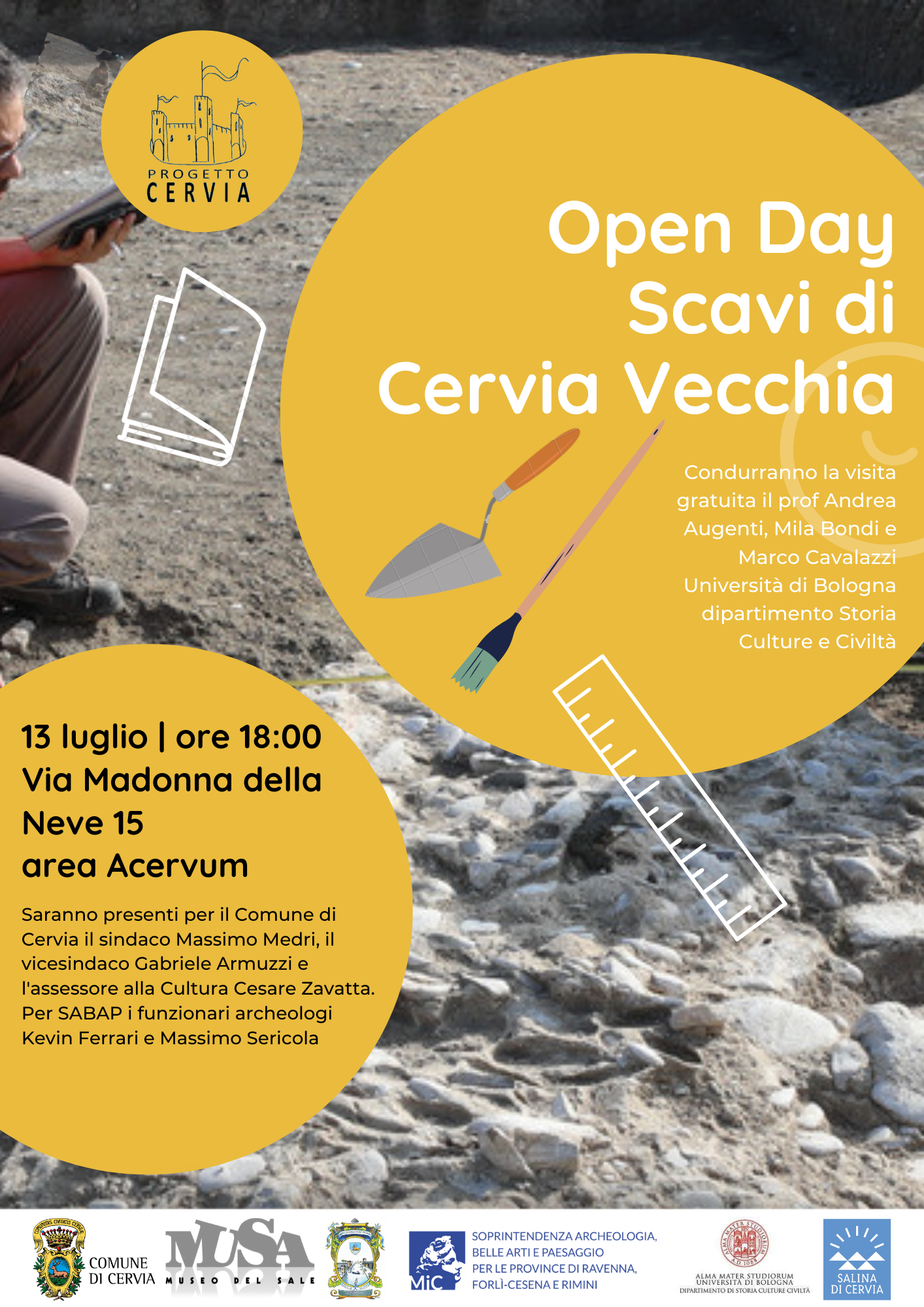 Per offrire ai cittadini e alle persone interessate la visione e la spiegazione delle attività svolte e delle novità emerse durante l’attuale campagna di scavo, il Comune di Cervia e l'Università di Bologna organizzano una visita guidata gratuita al sito archeologico per mercoledì 13 luglio alle ore 18.00. Appuntamento nei pressi di via Madonna della Neve 15 all'altezza di Acervum. Condurranno la guida gli archeologi dell'Università di Bologna - il prof. Andrea Augenti, direttore scientifico dello scavo, Mila Bondi e Marco Cavalazzi coordinatori del progetto. Presenti il sindaco Massimo Medri, il vicesindaco Gabriele Armuzzi e l’assessore alla Cultura Cesare Zavatta. La Soprintendenza sarà rappresentata dai funzionari archeologi Kevin Ferrari e Massimo Sericola.